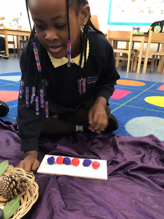 In maths, they have been exploring patterns. They have copied, created and described their own patterns this week.ย