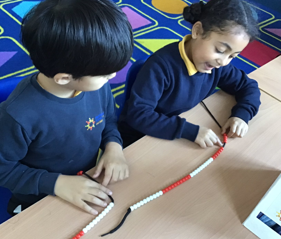 Using bead strings made it easier for the children to understand how addition works and to build their confidence in adding single digits. The activity also reinforced their understanding of place value and gave them a fun, tactile way to practise counting skills.
